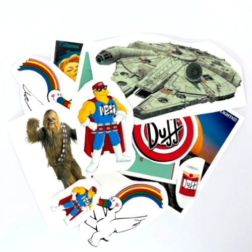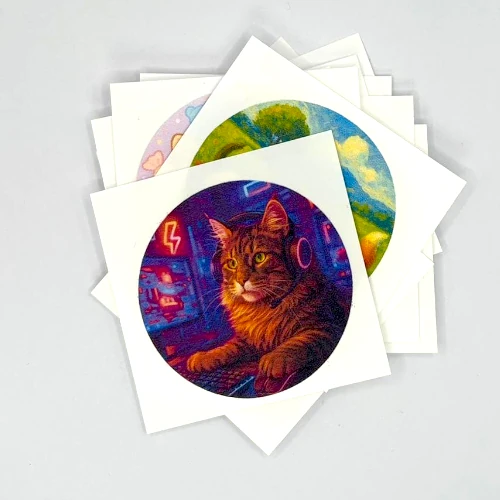 Pegatinas En brillo o en mate. Pueden ser de un solo diseño (todas iguales), o una imagen distinta por cada pegatina.