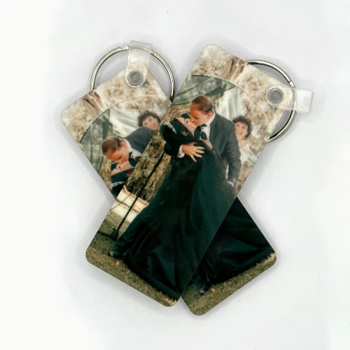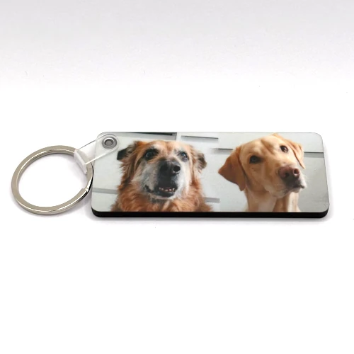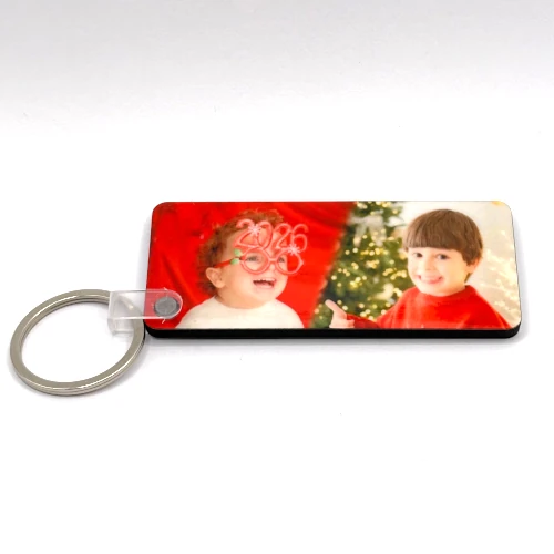 Llavero rectangular Agrega el texto o imagen que quieras. Se personalizan ambas caras, con la misma o distinta imagen. De resistente madera MDF con una capa de barniz. Medidas: 70mm x 29mm x 3mm
