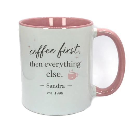 Taza Personalizada Agrega el texto o la imagen que quieras. Disponible en varios colores, incluido solo blanco. Capacidad de 310ml.